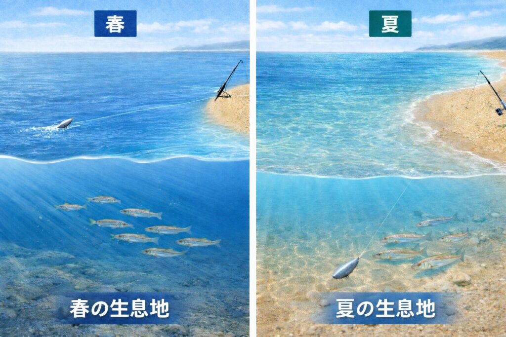 - 春・夏・秋それぞれのシーズン別釣法の違い
